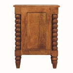 Arlen Spindle Bedside Table with 2 Drawers, Small - Amber Oak