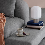 A contemporary chaise sofa by Broste Copenhagen with a bold geometric frame and durable upholstery.