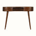 An open-slot shelf and two drawers provide plenty of space for a laptop, stationery, and other home office essentials. A brass knob and four tapered legs add a high-end feel. Also, style this desk as a console table.