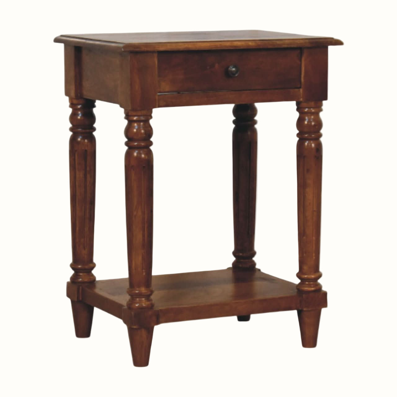Louis 1 Drawer Bedside Table, Small - Chestnut