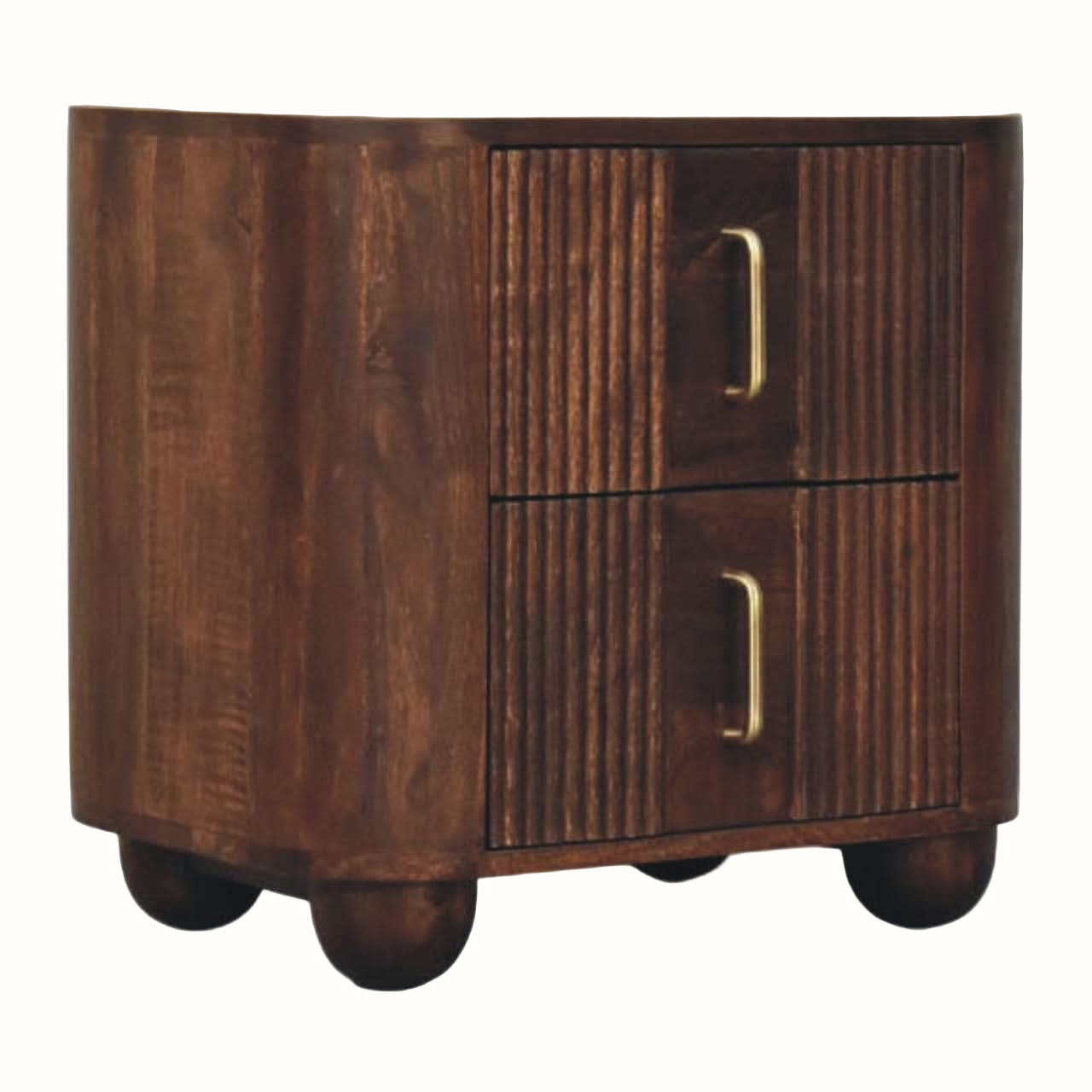 Merrick Fluted Bedside Table, Medium - California Walnut